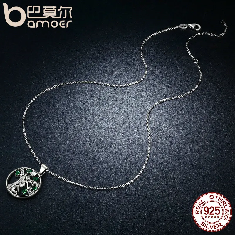 Greatest BAMOER Popular 925 Sterling Silver Rely Tree of Life Pendant Necklaces Clear Green CZ Women Fashion