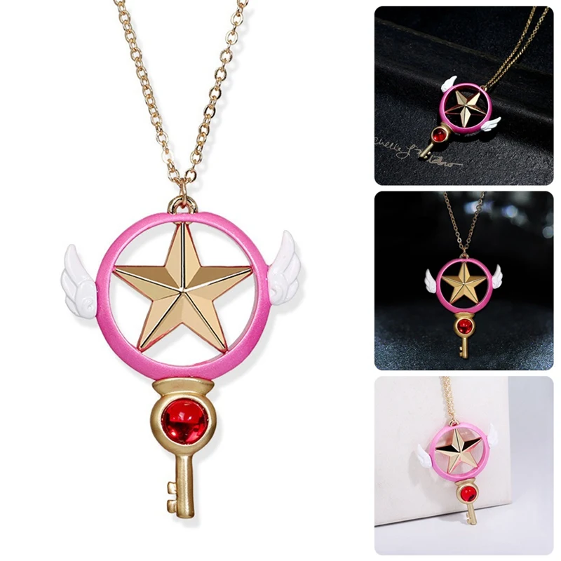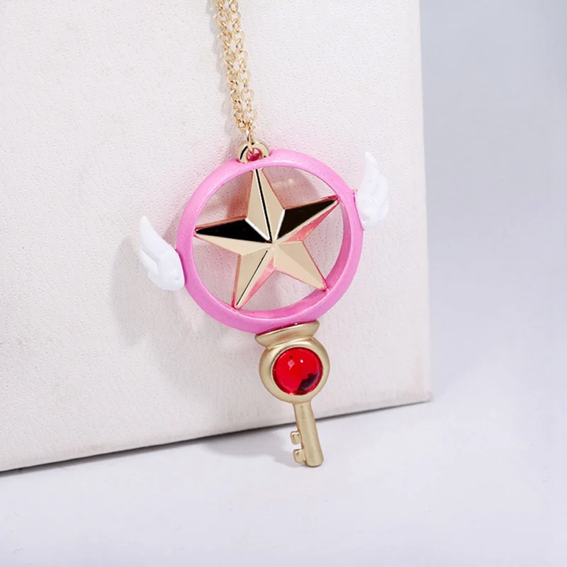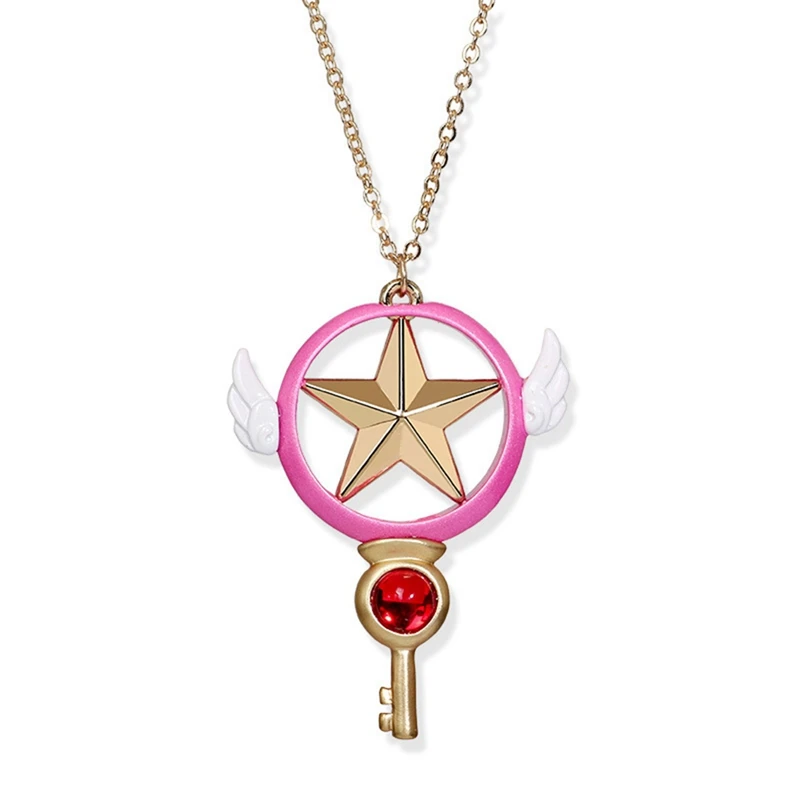 Greatest New Cartoon Card Captor Sakura Magic Wand Pendants Necklace Five-pointed Star Collected Jewelry
