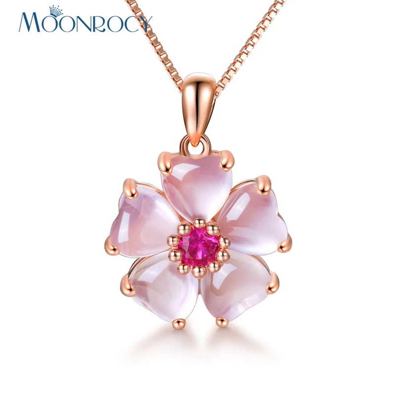 remarkable MOONROCY Rose Gold Color Pink Opal Necklace CZ Pendant Choker Flower Ross Quartz for Women Girls Gi