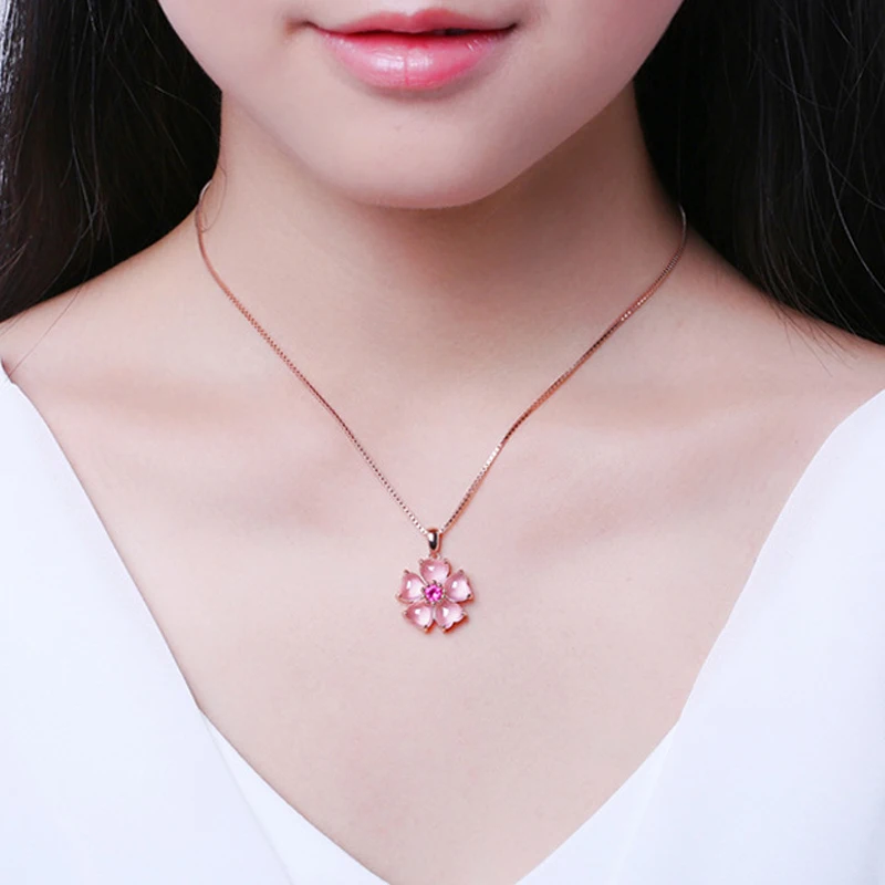 wonderful MOONROCY Rose Gold Color Pink Opal Necklace CZ Pendant Choker Flower Ross Quartz for Women Girls Gi